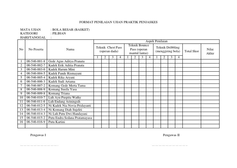 Rekapitulasi nilai ujian akhir s pendidikan jasmani olahrag sekolah : Ujian praktek penjasorkes sekolah menengah kejuruan smk tahun 20132014 mata pelajaran. Format penilaian ujian praktik pjok sdn kiarapandak 01 kelas vi.a materi no. Mar 20, 2018 · sd saraswati 6 denpasar setelah melaksanakan kegiatan ujian pemantapan bagi peserta didik kelas vi dilanjutkan dengan pelaksanaaan kegiatan penilaian tengah semester (pts) ii dari hari senin, 19 maret 2018 s.d jumat 23 maret 2018 bagi peserta didik kelas i s.d v sedangkan bagi peserta didik kelas vi diadakan kegiatan ujian praktek pembelajaran. Pdf program ujian praktik siswa kelas ix smp negeri 1 gresik.